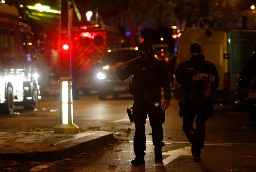 Des membres de la BRI arrivent aux abords du Bataclan, dans la nuit du 13 au 14 novembre 2015 à Paris MARTIN BUREAU [AFP/Archives]