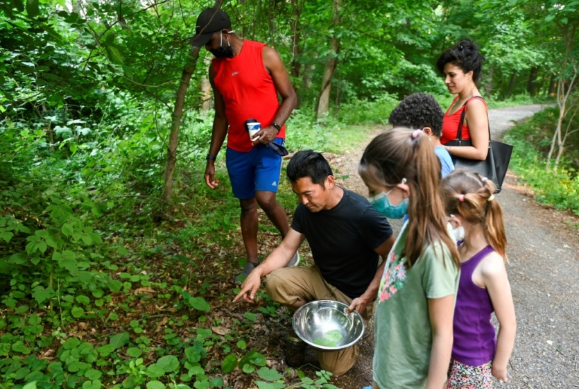 Le chef Bun Lai et des amis ramassent des cigales pour les cuisiner à Fort Totten Park à Washington le 23 mai 2021 ANDREW CABALLERO-REYNOLDS [AFP/Archives]