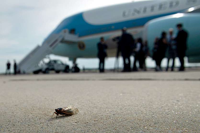 La veille, une nuée des insouciants insectes -- si nombreux dans la région qu'ils étaient apparus sur les radars météo -- avait envahi les moteurs de l'avion qui devait transporter les dizaines de reporters accompagnant le président dans sa tournée, clouant l'appareil au sol pendant plusieurs heures. Au final, un autre avion avait dû être affrété.