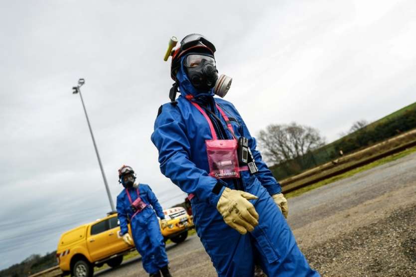 Pierre Eymond, directeur de la Force d'Action Rapide du Nucléaire (FARN), le 20 janvier 2021 lors d'un exercice à la centrale de Paluel Sameer Al-DOUMY [AFP]