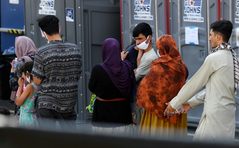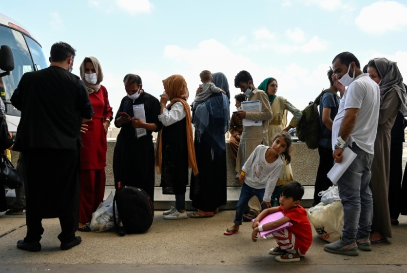 Des réfugiés afghans arrivent à un centre d'enregistrement à Chantilly, le 23 aaût 2021 en Virginie Olivier DOULIERY [AFP]MERCI DE VOUS IDENTIFIER