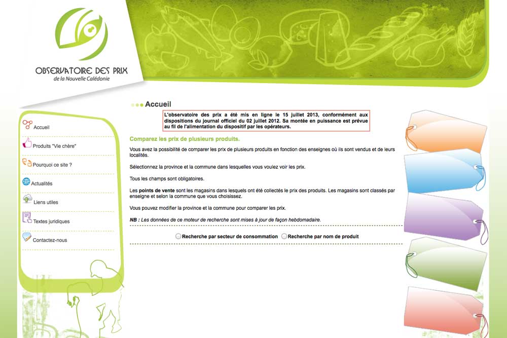- Point n° 5 du protocole de fin de conflit « vie chère », l’Observatoire des prix a été mis en ligne aujourd’hui, conformément aux dispositions du journal officiel du 02 juillet 2012 : http://www.observatoiredesprix.nc . Ce site a pour objectif de comparerIl vous reste 65% de l'article à découvrir.Cet article est réservé aux abonnés.