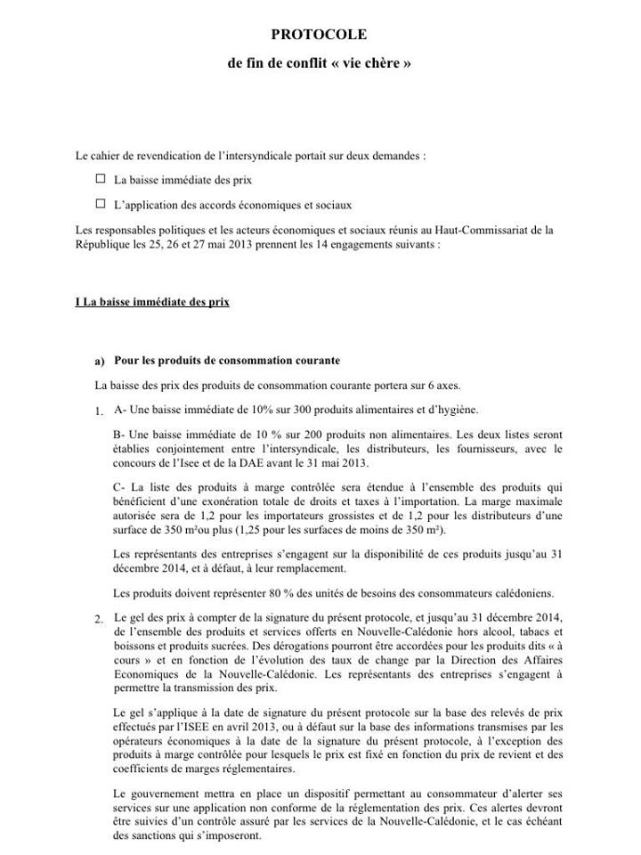 - Un accord a été trouvé ce matin au terme de négociations marathon entre élus locaux, organisations patronales et intersyndicale permettant de mettre un terme à la grève générale contre la vie chère. L’accord porte notamment sur la baisse des prix immédiate de 10 % de 300Il vous reste 77% de l'article à découvrir.Cet article est réservé aux abonnés.