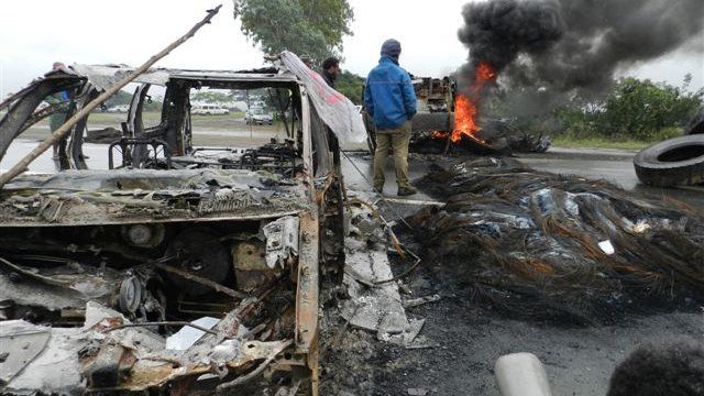 - Selon nos informations, les négociations sur la vie chère devraient être suspendues pour ne reprendre que ce soir à 20 h 30. Pendant ce temps, la situation se tend dans le pays. De nombreux barrages ont ainsi été édifiés sur les routes du pays ce week-end. A Poya, une voiture calcinée et des camions de roulage bloquent la RT1 à la limite entre la province Sud et la province Nord. A Bourail, un barrage filtrant ralentit la situation à la sortie de la commune. Des barrages ont aussi érigés à Hienghène, à Touho, à Ponérihouen et à Houaïlou. Par ailleurs, le manque d'essence pourrait entraîner de nouvelles perturbations demain. (photo Philippe Huneau: www.nouvellecaledonie.la1ere.fr).Il vous reste 99% de l'article à découvrir.Cet article est réservé aux abonnés.