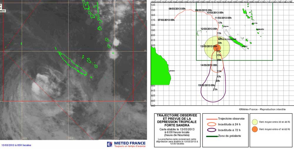- Selon le dernier bulletin de Météo France, le cyclone tropicale Sandra est redevenu une dépression tropicale. Sa pression au centre est estimée à 980 hPa et elle génère des vents moyens estimés à 100 km/h (rafales à 150 km/h) dans un rayon de 35 km autour du centre. Sandra se déplaceIl vous reste 43% de l'article à découvrir.Cet article est réservé aux abonnés.