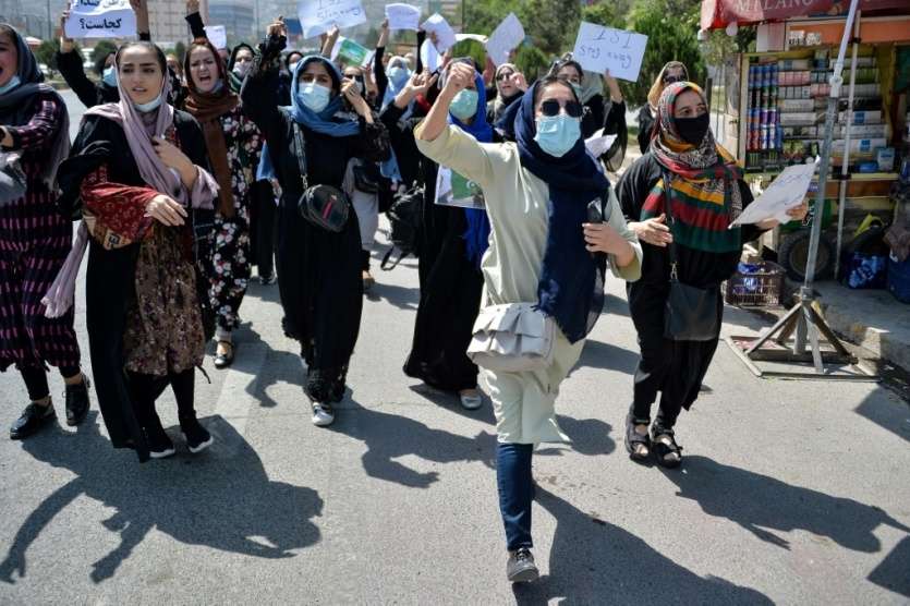 Parmi les manifestants figuraient une majorité de femmes, qui craignent de voir les talibans les exclure de la vie publique comme lors de leur précédent régime, entre 1996 et 2001.