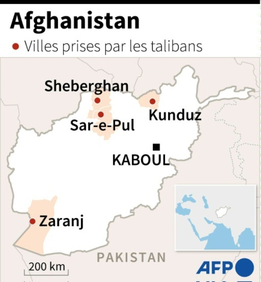 Ils sont désormais en possession de six des 34 capitales provinciales, après s'être emparés samedi de Sheberghan, fief du célèbre chef de guerre Abdul Rashid Dostom, à 50 km au nord de Sar-e-Pul, et vendredi de Zaranj, capitale de la lointaine province de Nimroz (sud-ouest), à la frontière avec l'Iran.