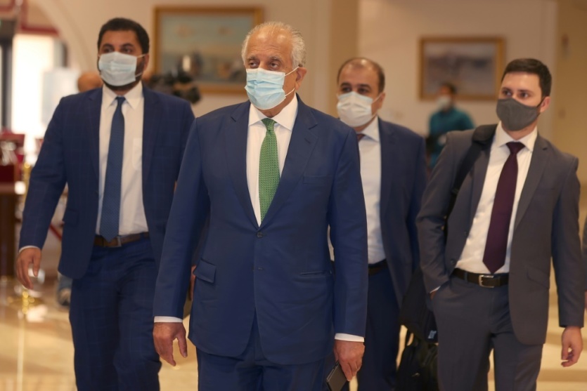 L'envoyé spécial des Etats-Unis pour l'Afghanistan, Zalmay Khalilzad (2e G) à Doha pour une réunion internationale sur l'Afghanistan le 10 août 2021 KARIM JAAFAR [AFP]