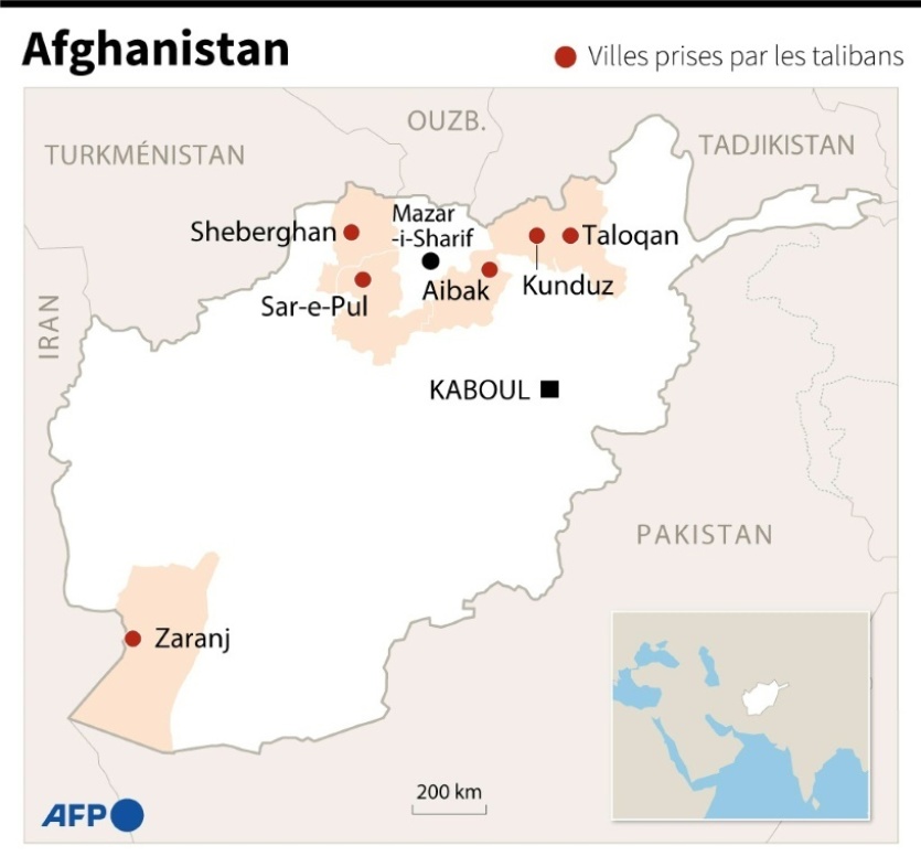 Depuis vendredi, ils ont pris le contrôle de Zaranj (sud-ouest), de Sheberghan (nord), fief du célèbre chef de guerre Abdul Rashid Dostom, de Kunduz, la grande ville du nord-est, ainsi que de trois autres capitales septentrionales, Taloqan, Sar-e-Pul et Aibak.