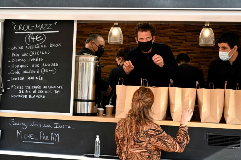 Le chef Alexandre Mazzia sert une cliente dans son food truck à Marseille, le 24 novembre 2020 NICOLAS TUCAT [AFP/Archives]