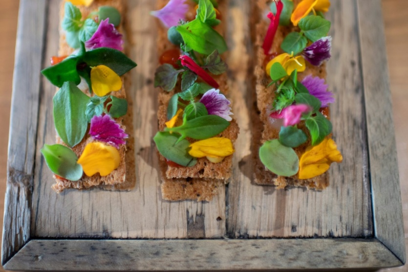 Il n'y a presque pas de viande, les plats sont peu salés mais assaisonnés avec plus de 200 épices, comme le poivre de Sarawak ou la baie de goji. Le chef travaille avec des maraîchers en permaculture ou des pêcheurs qui tuent le poisson avec la technique japonaise de l'ikejime qui sublime le goût.