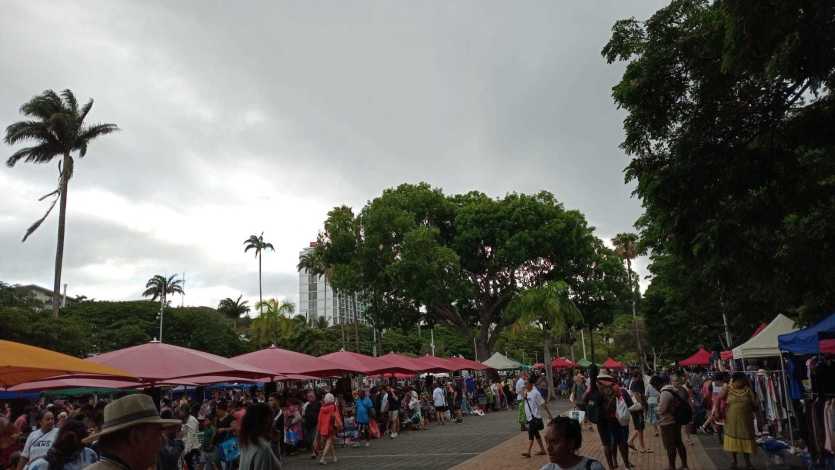 Après deux reports successifs, le vide-greniers du centre-ville s’est enfin tenu, dimanche, sur la place des Cocotiers. Photo DRAprès deux reports coup sur coup provoqués par les mauvaises conditions météorologiques, le premier vide-greniers du centre-ville s’est tenu, dimanche matin, sur la place des Cocotiers. Mais, une fois de plus, la météo n’a pas épargné l’évènement. Rien qui, cette fois, n’a empêché les 250 commerçants présents de travailler jusqu’en fin de matinée. Prochain rendez-vous : dimanche 3 mars.