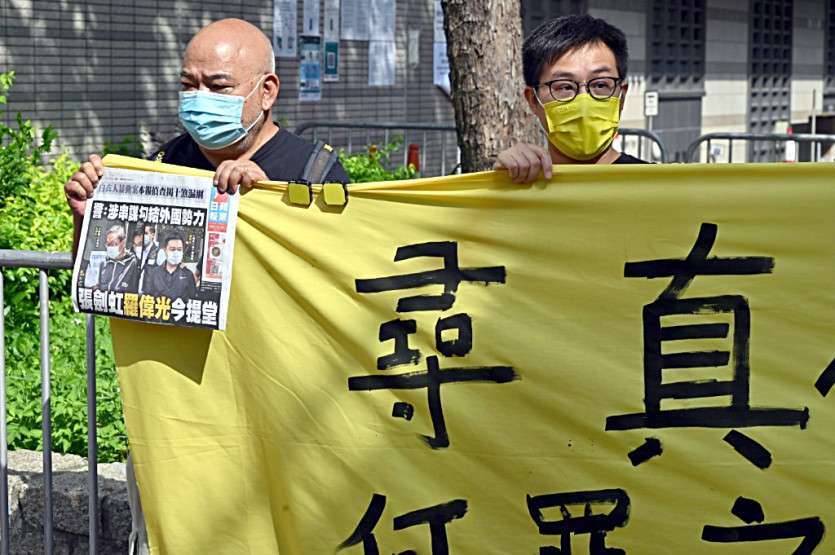 Manifestation de soutien aux deux dirigeants de l'Apple Daily devant le tribunal de Hong Kong, le 19 juin 2021 Peter PARKS [AFP]
