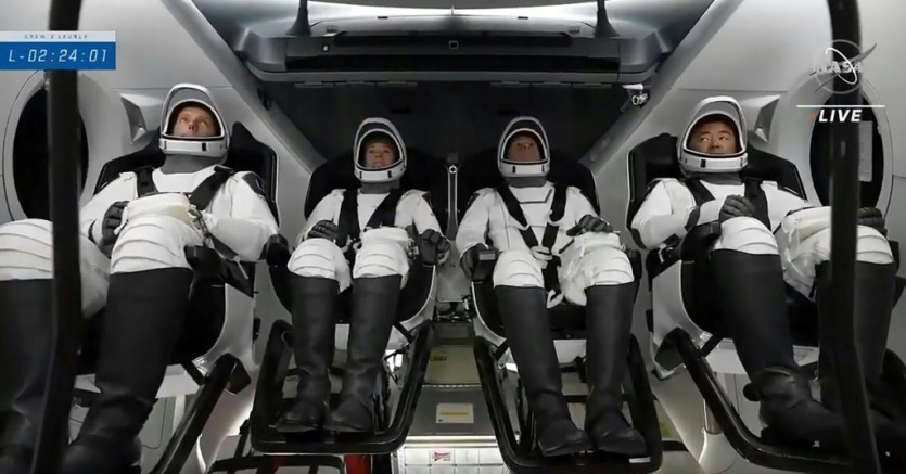 "C'est génial d'être de retour dans l'espace", a lancé Shane Kimbrough lors de l'entrée en orbite. Les astronautes, qui ont tous déjà été dans l'espace, étaient visibles grâce à une caméra embarquée dans leur vaisseau Dragon.