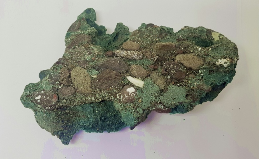 Son équipe a alors identifié un nouveau type de formation géologique, avec un intrus au milieu des composants minéraux que l'on retrouve habituellement dans les rochers: des déchets plastiques, qui s'incrustent dans les matériaux naturels.