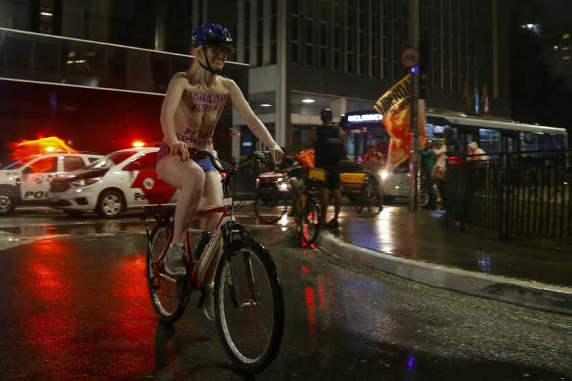 En début de soirée sur l'Avenue Paulista, artère la plus emblématique de la capitale économique du Brésil, la plupart sont dans leur plus simple appareil, mais certains, plus pudiques, préfèrent pédaler en string ou autres sous-vêtements.