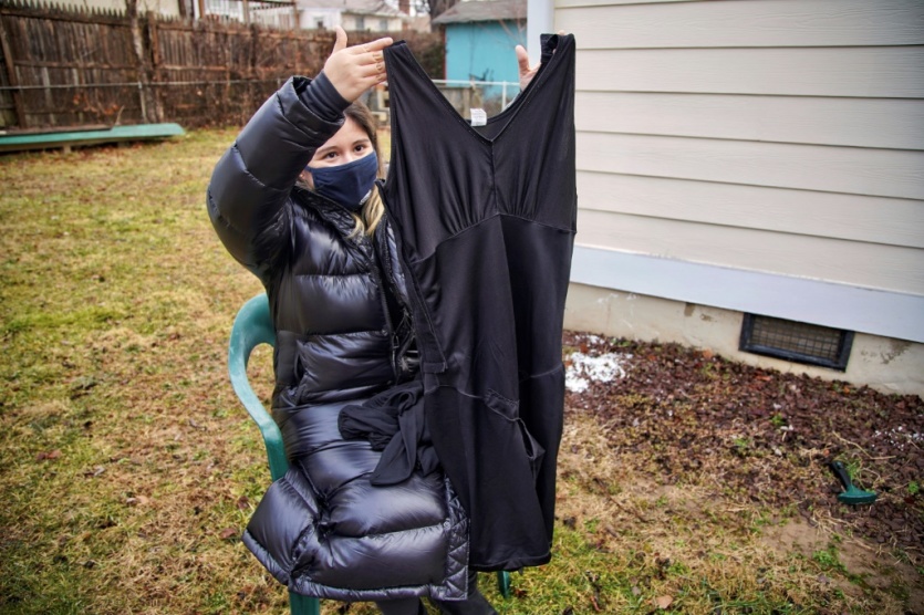 Ana Caceres, 25 ans, qui a eu une reconstruction mammaire, à Silver Spring dans le Maryland, le 16 février 2021 Agnes BUN [AFP]