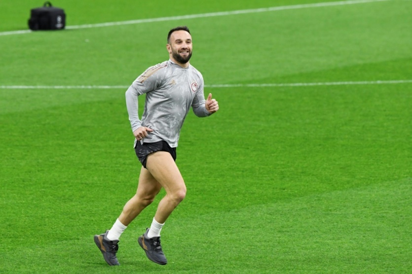Mathieu Valbuena à l'entraînement avec l'Olympiakos au stade Vélodrome, le 30 novembre 2020, veille du match contre Marseille en Ligue des champions NICOLAS TUCAT [AFP/Archives]