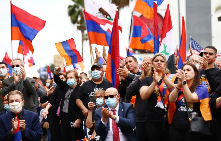 rassemblement pour commémorer le 106e anniversaire du massacre d'un million et demi d'Arméniens par l'Empire ottoman en 1915, le 24 avril 2021 à Los Angeles MARIO TAMA [gETTY/AFP]MERCI DE VOUS IDENTIFIER