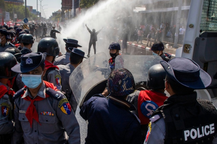 La police utilise un canon à eau contre des manifestants à Mandalay (Birmanie), le 9 février 2021 STR [AFP]
