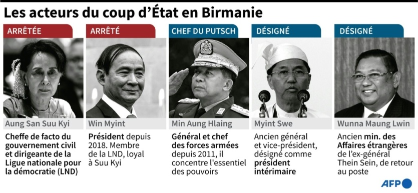 Les acteurs du coup d'Etat en Birmanie John SAEKI [AFP]