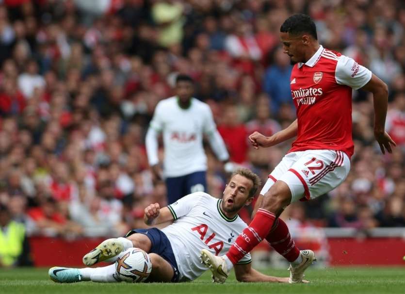 - | Crée le 03.10.2022 à 14h54 | Mis à jour le 03.10.2022 à 23h53ImprimerLe défenseur d'Arsenal William Saliba stoppe Harry Kane (à terre) lors du succès 3-1 sur Tottenham à l'Emirates Stadium, le 1er octobre 2022 Adrian DENNIS [AFP/Archives]William Saliba s'est montré convainquant avec Arsenal face aux stars de Tottenham, de quoi séduire Didier Deschamps après un dernier rassemblement peu emballant avec des Bleus que Wissam Ben Yedder, triple buteur dimanche, fait tout pour retrouver.