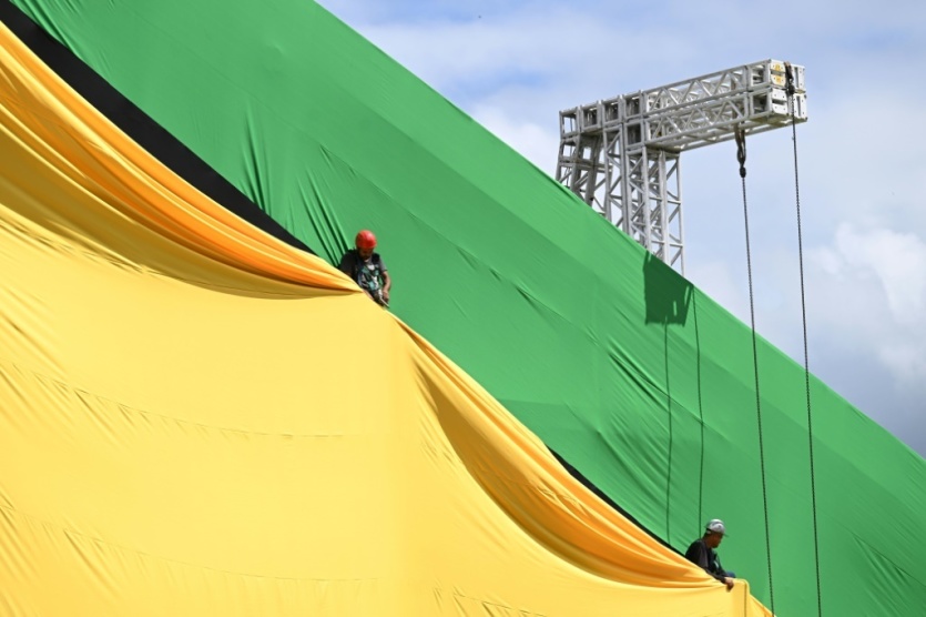 Des ouvriers montent la scène du concert prévu le jour de l'investiture de Lula, le 27 décembre 2022 à Brasilia EVARISTO SA [AFP]