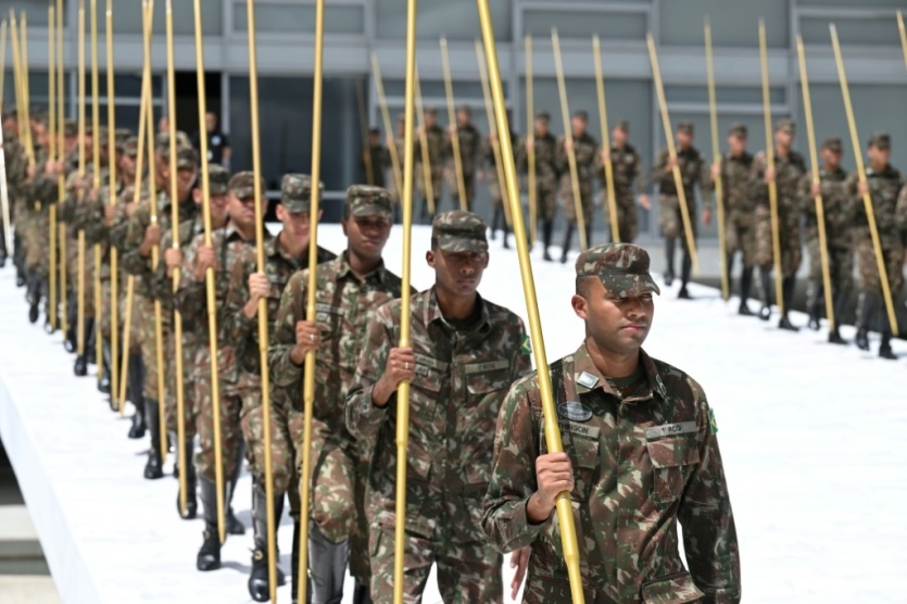 Des militaires brésiliens préparent la cérémonie d'investiture du président Lula, le 27 décembre 2022 à Brasilia EVARISTO SA [AFP]MERCI DE VOUS IDENTIFIER