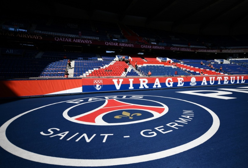 Le logo du Paris SG devant le virage Auteuil au Parc des Princes, le 21 juillet 2020 FRANCK FIFE [AFP]MERCI DE VOUS IDENTIFIER