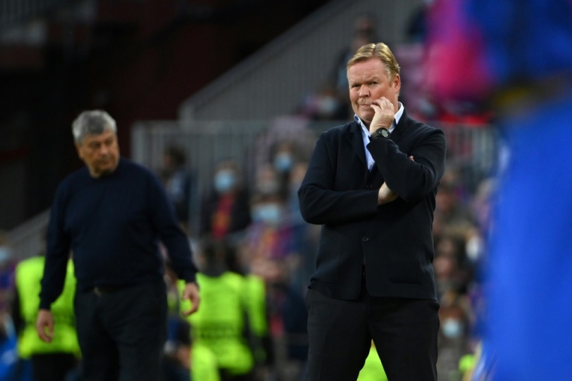 Le coach néerlandais du Barça Ronald Koeman lors du match contre le Dynamo Kiev au stade du Camp Nou de Barcelone en Espagne le 20 octobre 2021. LLUIS GENE [AFP]