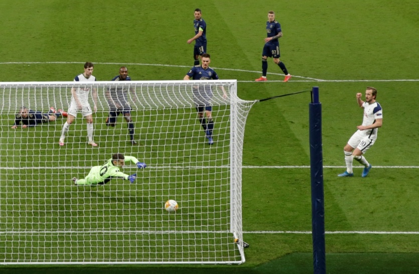 L'attaquant Harry Kane (d) ouvre le score pour Tottenham lors du 8e de finale retour de la Ligue Europa contre le Dinamo Zagreb, à Londres, le 11 mars 2021 Alastair Grant [POOL/AFP]MERCI DE VOUS IDENTIFIER