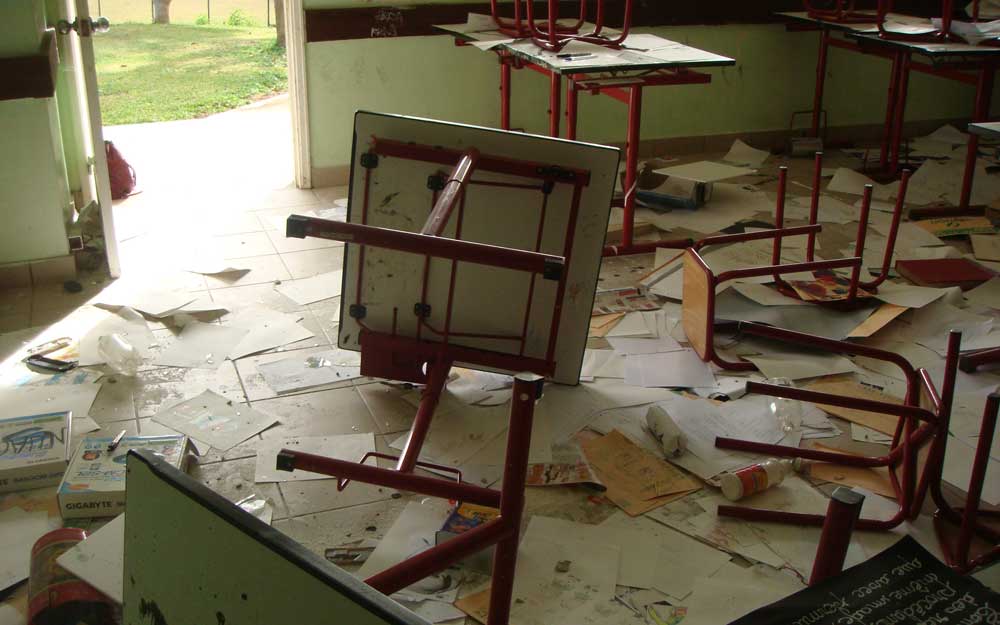 - Cinq semaines après le saccage du collège, les personnels montent au créneau pour dénoncer une situation qui se dégrade. De nouveaux incidents les poussent à exercer leur droit de retrait, lundi. Si le vice-recteur est vivement interpellé, c'est bien le climat général d'insécurité dans la commune qui motive ce ras-le-bol.Vingt ordinateurs détruits, des salles de classe ravagées. Début septembre, le saccage du collège de Canala avait marqué les esprits. Des réunions avaient été organisées par les personnels et les parents pour provoquer une prise de conscience. La mairie avait répondu par du nettoyage, laIl vous reste 94% de l'article à découvrir.Cet article est réservé aux abonnés.