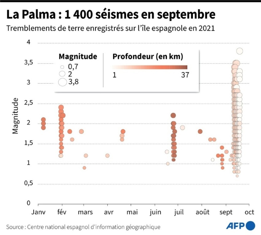 La Palma : 1 400 séismes en septembre Patricio ARANA [AFP]