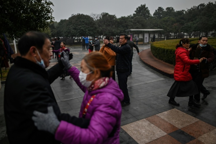 Des habitants font de l'exercice dans un parc de Wuhan, le 23 janvier 2021 en Chine Hector RETAMAL [AFP]