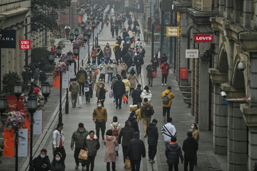 Des piétons dans une rue de Wuhan, le 23 janvier 2021 en Chine Hector RETAMAL [AFP]MERCI DE VOUS IDENTIFIER