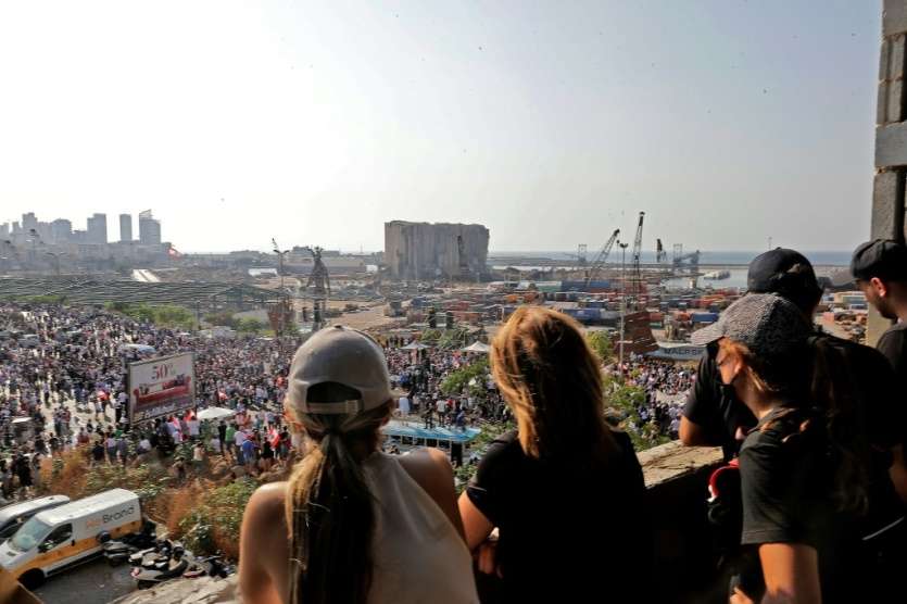 - | Crée le 04.08.2021 à 14h44 | Mis à jour le 05.08.2021 à 03h14ImprimerVue du port de Beyrouth alors que de nombreux manifestants se sont rassemblés dans le secteur pour marquer le 1er anniversaire de l'explosion dévastatrice qui a ravagé le port et une partie de la capitale libanaise, le 4 aoôut 2021 JOSEPH EID [AFP]Dans la douleur et la colère, des milliers de Libanais ont afflué mercredi dans le centre de Beyrouth pour marquer le 1er anniversaire de l'explosion meurtrière qui a ravagé son port et une partie de la ville, et fustiger l'impunité de la classe politique.