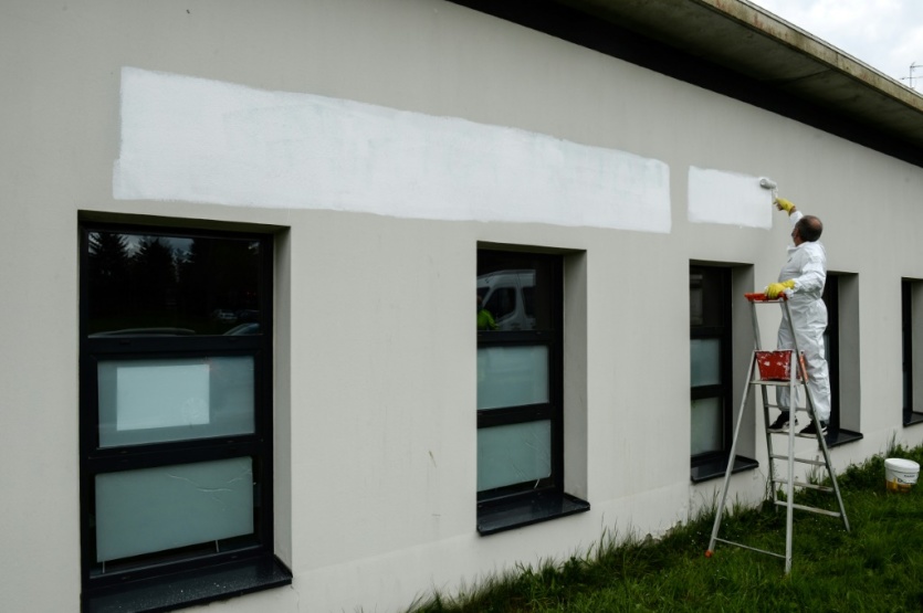Des employés municipaux repeignent les murs extérieurs du centre culturel islamique Avicenne après des tags anti-musulmans, le 11 avril 2021 à Rennes JEAN-FRANCOIS MONIER [AFP]MERCI DE VOUS IDENTIFIER