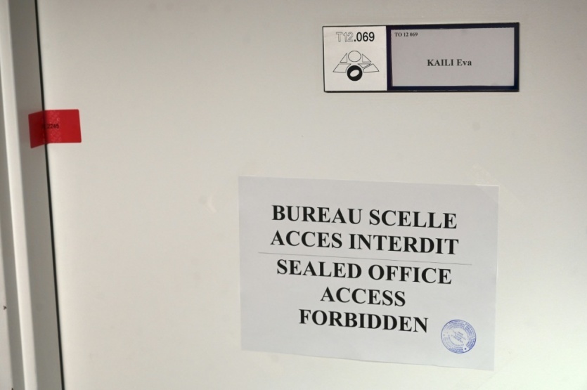 Des scellés posés sur la porte du bureau d'Eva Kaili, vice-présidente du Parlement européen, déchu de sa fonction, le 13 décembre 2022 à Strasbourg Frederick FLORIN [AFP]