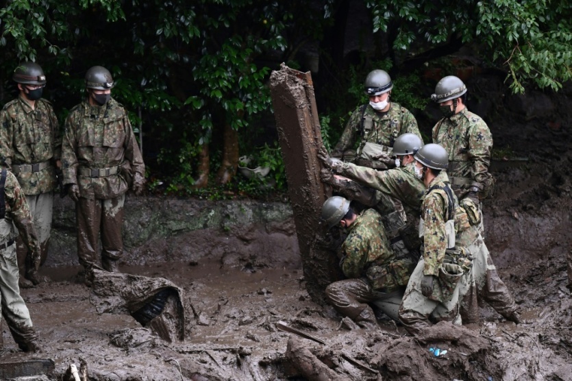 Des militaires participent aux opérations de recherche après la coulée de boue à Atami, au Japon, le 5 juillet 2021 CHARLY TRIBALLEAU [AFP]MERCI DE VOUS IDENTIFIER