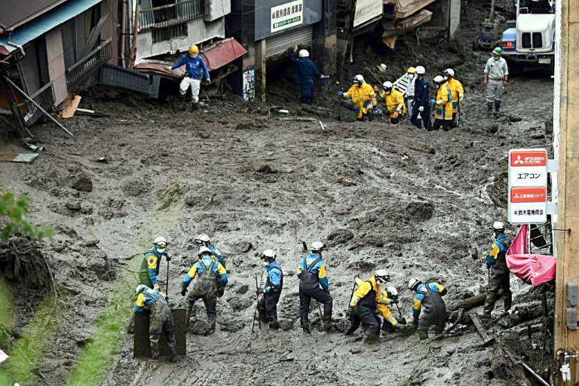 Atami, station balnéaire à flanc de montagne située à environ 90 km au sud-ouest de Tokyo, avait reçu vendredi et samedi 313 mm de pluie en 48 heures, alors qu'elle enregistre en moyenne chaque année 242 mm pour l'ensemble du mois de juillet.