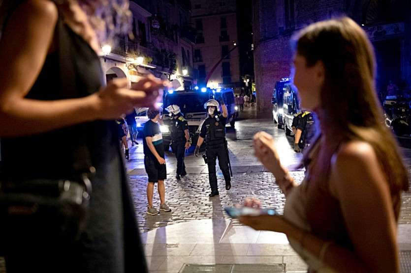 - | Crée le 18.07.2021 à 15h15 | Mis à jour le 18.07.2021 à 16h15ImprimerLa police demande aux personnes qui participent à une soirée de quitter les lieux alors que le couvre-feu entre en vigueur dans le quartier de Born, à Barcelone, le 17 juillet 2021. Josep LAGO [AFP]Les pays européens, où un fort rebond de l'épidémie est attendu dans les prochaines semaines, tentent d'en contenir la propagation, avec le durcissement des conditions d'accès en France et au Royaume-Uni.