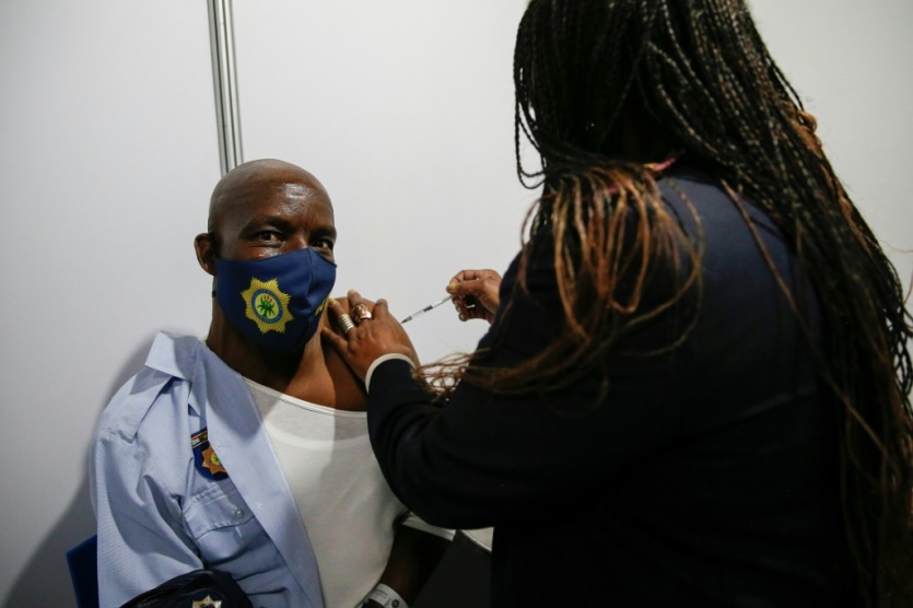 Vaccination d'un policier sud-africain à Soweto, le 5 juillet 2021 Phill Magakoe [AFP]