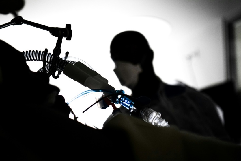 Un soignant dans l'unité de soins intensifs pour les malades du Covid-19 à l'hôpital Ambroise Paré à Boulogne-Billancourt, en région parisienne, le 8 mars 2021 ALAIN JOCARD [AFP]