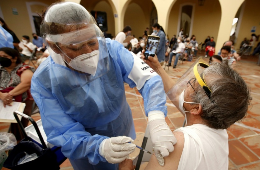 Une femme reçoit une dose du vaccin Pfizer-BioNTech contre le Covid-19 dans un centre de vaccination à Tlaquepaque, au Mexique, le 8 mars 2021 ULISES RUIZ [AFP]MERCI DE VOUS IDENTIFIER