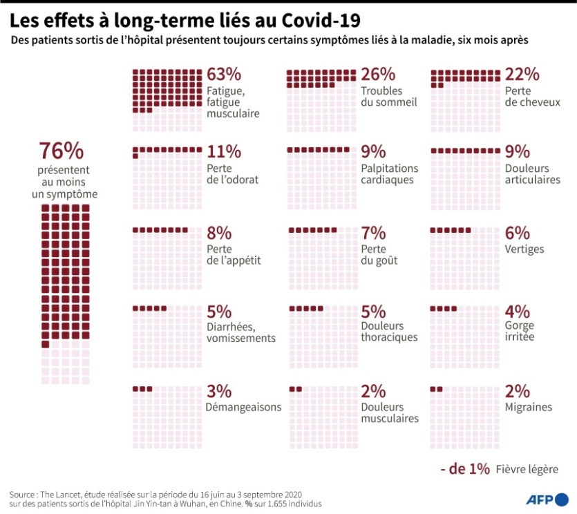 Les effets à long-terme liés au Covid-19 Bertille LAGORCE [THE LANCET/AFP]MERCI DE VOUS IDENTIFIER