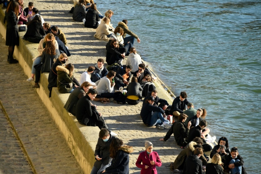Des badauds sur les quais de Seine à Paris, le 6 mars 2021 Bertrand GUAY [AFP]