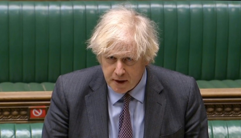 Le Premier ministre britannique Boris Johnson annonce le plan de déconfinement progressif pour l'Angleterre, le 22 février 2021 à Londres - [PRU/AFP]
