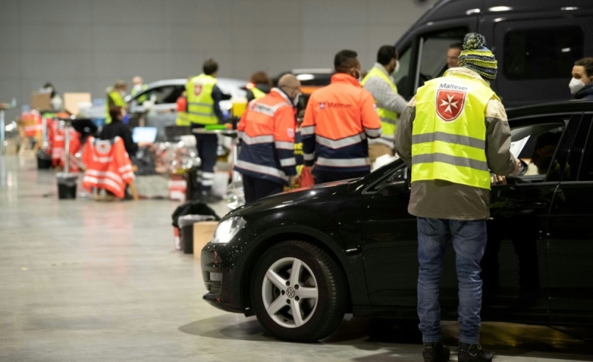 Un centre de vaccination contre le Covid-19 en drive-in, le 17 décembre 2021 à Stuttgart, en Allemagne THOMAS KIENZLE [AFP]