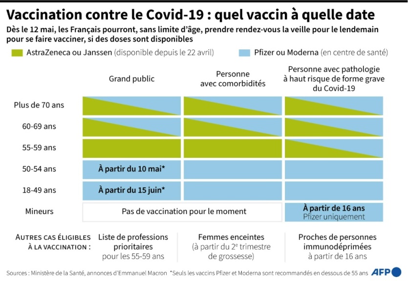 Quand aux plus de 50 ans, pour lesquels la date d'ouverture de la vaccination a été avancée de 5 jours, il pourront prendre rendez-vous dès vendredi 7 mai.