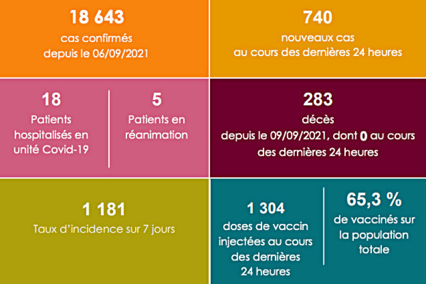 Hier, jeudi 27 janvier, 1 304 personnes ont reçu une injection. Depuis le début de la campagne, 186 015 personnes ont reçu au moins une dose, soit 80,39 % de la population vaccinable et 68,64 % de la population totale ; 176 953 personnes ont reçu deux doses de vaccin. 62 461 personnes ont reçu une dose de rappel.